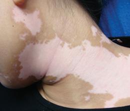 二、如何治疗颈部白癜风?愈后巩固治疗是白癜风治愈的关键。白斑消失后,应继续巩固治疗一段时间,避免复发。在治疗的过程中白癜风患者要注意谨慎选择药物,不可乱吃激素、免疫抑制剂或含有这些药物以免损害健康,引起严重后果。生活中白癜风患者要消除心理压力,此病不具有传染性。