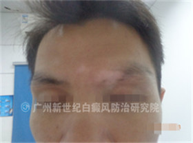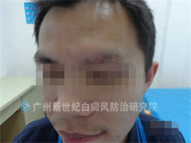24岁的了梁先生,一年前发现左眉部不知道是什么原因出现了零星的小白点,后小白点扩散成片状的小白斑。梁先生赶忙去医院诊断,确诊为白癜风,后来在其他医院治疗不见好转,才重视起来,经朋友介绍来到广州新世纪白癜风防治研究院。