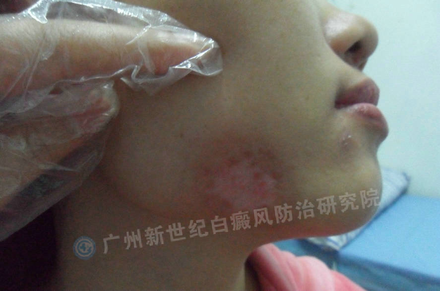 现年34岁的陈女士在广州一家制鞋厂打工,原本的她性格开朗,尽管肩负着家事、工作的辛劳,但和家人、孩子一起是她珍视的时光。然而从五个月前开始,不知道是不是由于长期熬夜、还有工作环境的关系,她的右下颌处长出了一块醒目的白斑,对着镜子还可看到脸部细小的白点,随着白斑扩大,她的烦恼也与日俱增。