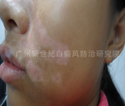 ▲主诉:两年前面部出现白斑,后不断扩大、增多,身体其它部位也陆续出现白班。