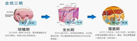 无痛培植:黑色素细胞培植术针对不同部位皮肤神经敏感性,人性化的采用无痛移植技术处理受害处表皮,再移植机体其它部位正常的黑色素细胞,整个过程无任何痛苦,即使是儿童也能轻松接受。
