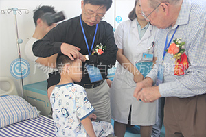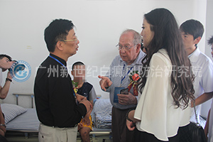 孟中平教授和伯纳德·葛菲教授曾多次联合参加会诊活动,他们来院后首先一起观察了住院治疗的患者的病情恢复状况,并对治疗方案提出了新的改进方法。葛菲教授对白癜风儿童的病情很是关心,一直用还不太熟练的汉语鼓励白癜风患儿:“加油!”孟中平一边安抚患儿情绪,一边仔细观察病情,和葛菲教授一起为患者诊疗。