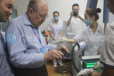 此次峰会之所以选择在广州新世纪白癜风防治研究院召开,和广州新世纪白癜风防治研究院近年来在白癜风治疗技术的研发上的努力有着必然的关系。在对广州新世纪白癜风防治研究院住院部参观时,葛菲教授对许多不同于欧美的治疗方式很感兴趣,也惊叹于中西医结合治疗的神奇。他盛赞广州新世纪白癜风防治研究院在临床上使用中西医结合的治疗方式大大提升了临床。