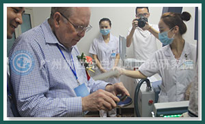 2015年7月,"308之父"伯纳德·葛菲教授莅临广州新世纪白癜风防治研究院,在参观308治疗室时,盛赞:"贵院在对308准分子光治疗仪的操作规范和临床应用上具有相当高的水准。"