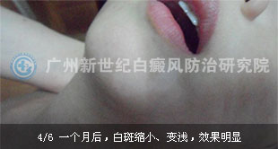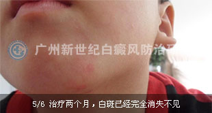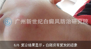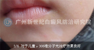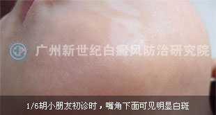 "胡小朋友的下颌有非常明显的白斑,典型的白癜风临床表现",经广州新世纪白癜风防治研究院的医生刘斌诊断:小朋友为局限型白癜风,目前处于发展期。