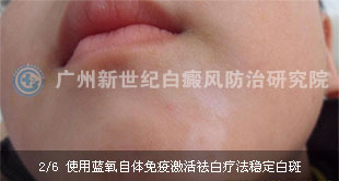 刘斌医生灵活制定治疗方案:先通过纯绿色疗法"蓝氧自体免疫激活祛白疗法"配合相应的温和药物去进行治疗,稳定白斑;再通过308准分子光照射治疗,这种治疗方式适合各个阶段的人群,刺激性小,治疗也方便。
